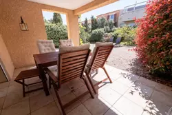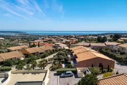 Mysigt och välskött hus på ett plan i rad beläget i en lugn och internationell domän. Trevlig entré med terrass i söderläge med öppen utsikt över lagunen och havet.