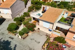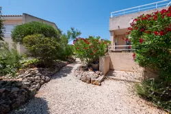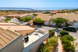 I Fitou, charmigt radhus i en plan med stor trädgård, panoramaterrass och havsutsikt