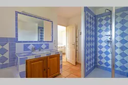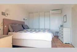 Andra våningen: Ytterligare två luftkonditionerade sovrum, alla med duschrum och toalett, samt en privat terrass med fantastisk utsikt över landsbygden och Grimaud-slottet.