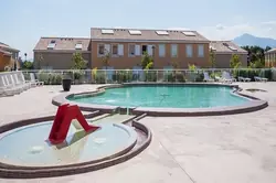Det finns en stor pool, terrasser, jacuzzi, gym och kiosk.